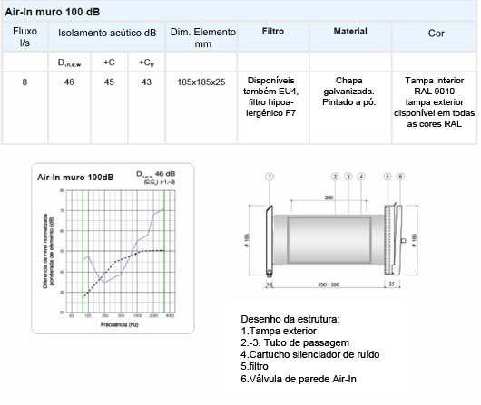 Air-In 100 dB é um arejador de fabrico finlandês que se instala na parede. Apresenta os melhores valores do mercado em termos de isolamento de ruído e de fluxo de ar sem corrente de ar.