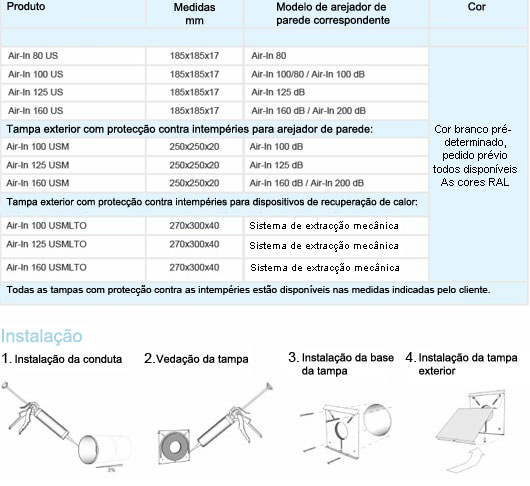O mesmo modelo básico de tampa exterior Air-In adapta-se a todos os arejadores de parede Air-In, só variando a abertura da instalação de acordo com o tipo de arejador.